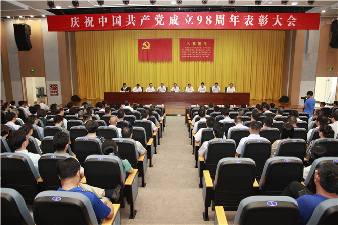 7月1日下午,学校庆祝中国共产党成立98周年表彰大会在图书馆二楼报告厅举行,共同回顾中国共产党成立98年来的光辉历程,表彰一学年来在学校党建工作中涌现出来的先进集体和个人,对我校基层党组织建设进行再部署,确保把年初确定的党建工作任务落实到位。学校党委领导班子成员出席大会并在主席台就坐,党委副书记牟善德主持大会。2018-2019学年度优秀共产党员和优秀党务工作者,学校老干部党支部班子成员,机关党支部全体党员,院部党总支、教师(学生)党支部班子成员,各院部选派的党员、入党积极分子代表参加会议,非中共党员部门负责人列席会议。