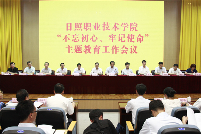 党委书记何子安,日照市“不忘初心、牢记使命”主题教育巡回指导九组组长、市委教育工委副书记、市教育局党组副书记、副局长刘伟出席会议并讲话。日照市“不忘初心、牢记使命”主题教育巡回指导九组副组长、市人民政府教育督导室主任李慎志,巡回指导组成员秦泗军、杜晓明、韩首辰和校党委领导班子成员,学校副科及以上干部、其他在职党员和老干部支部成员参加会议。党委副书记、院长冯新广主持会议。