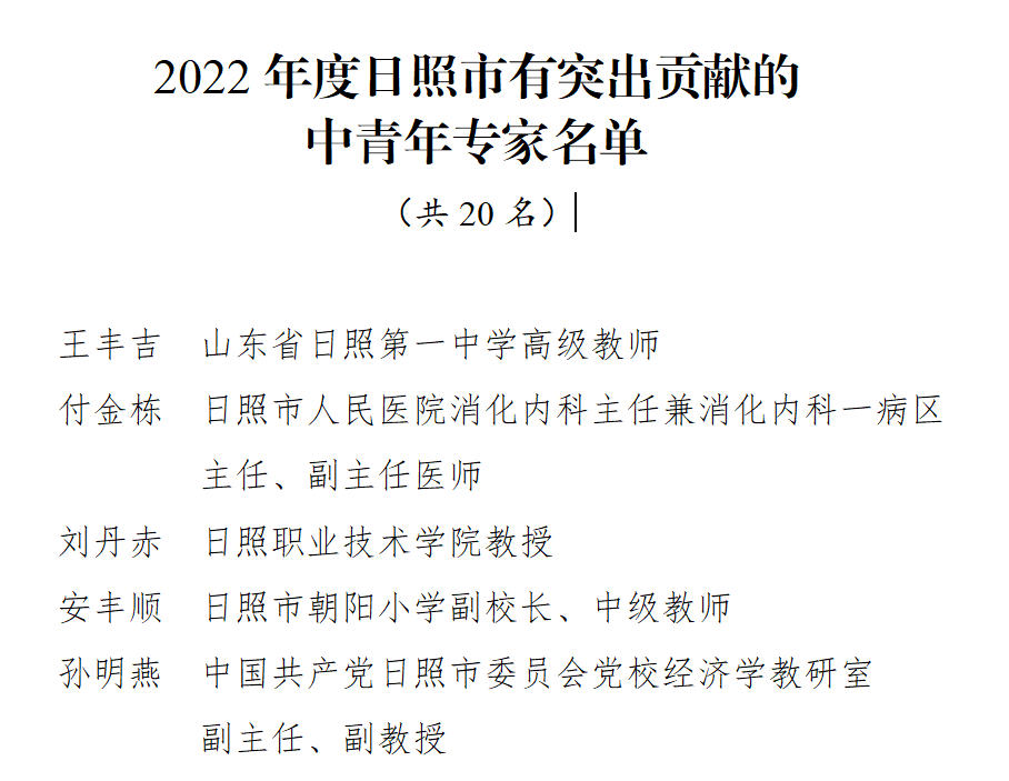 近日,日照市人民政府公布了2022年度“日照市有突出贡献的中青年专家”名单,我校刘丹赤教授位列其中,目前我校共有8名教师获得该项荣誉。