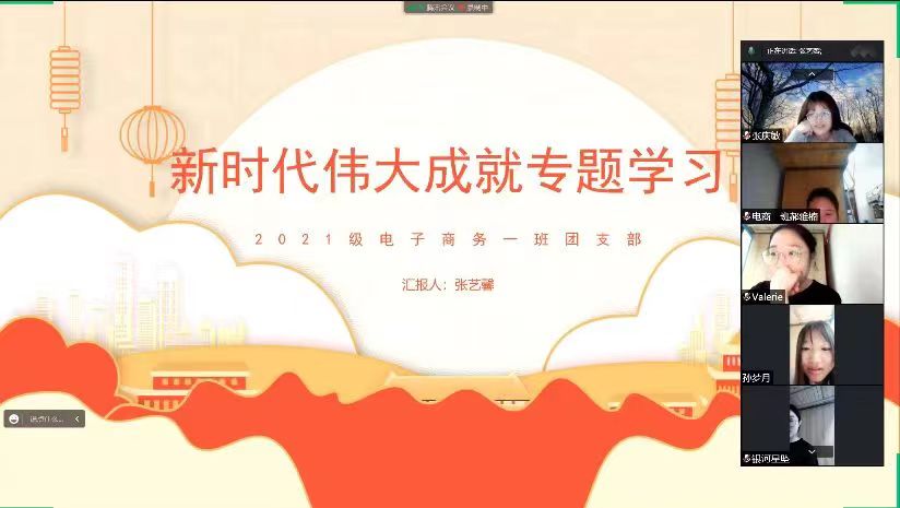 本次活动采用线上会议的形式进行,团员们踊跃分享当代共青团员的伟大事迹,感受新时代的伟大成就;支部成员们共同学习习近平总书记《论党的青年工作》著作,深入学习宣传其中蕴含的新理念、新观点和新要求,自觉承担时代重任与历史担当;各团支部还通过观看教育影片《党课开讲啦》,激励同学们接过时代的接力棒,传承团的红色精神。